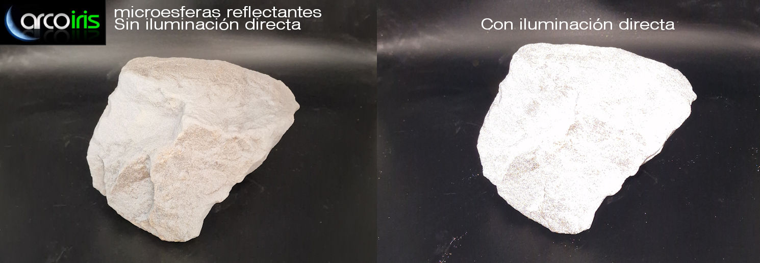 Con una forma casi perfectamente remonda, y de gran pureza, las «esferas» son verdaderas bolas microscópicas, y producen un efecto retrorreflectante muy potente.